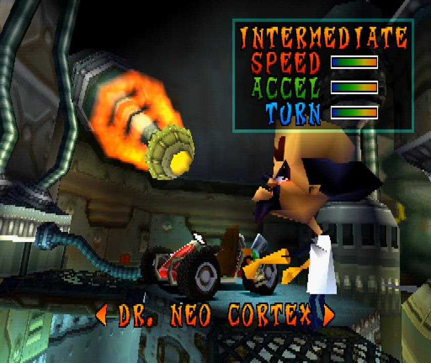 Esse jogo foi muito elogiado na época do lançamento pois mesclava tudo que já tinha sido visto em games de kart com muita graça por parte dos personagens e suas falas bem marcantes… Exemplo: “You’ll be miiineee!!!” (Neo Cortex).